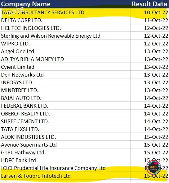 IT giants (Tata Consultancy Services, Infosys, Wipro, and HCL Technologies) as well as other Nifty50 firms like Bajaj Auto, Shree Cement, and HDFC Bank will start the September quarter results season. These companies account for almost 23% of the total weight in the NSE benchmark index.