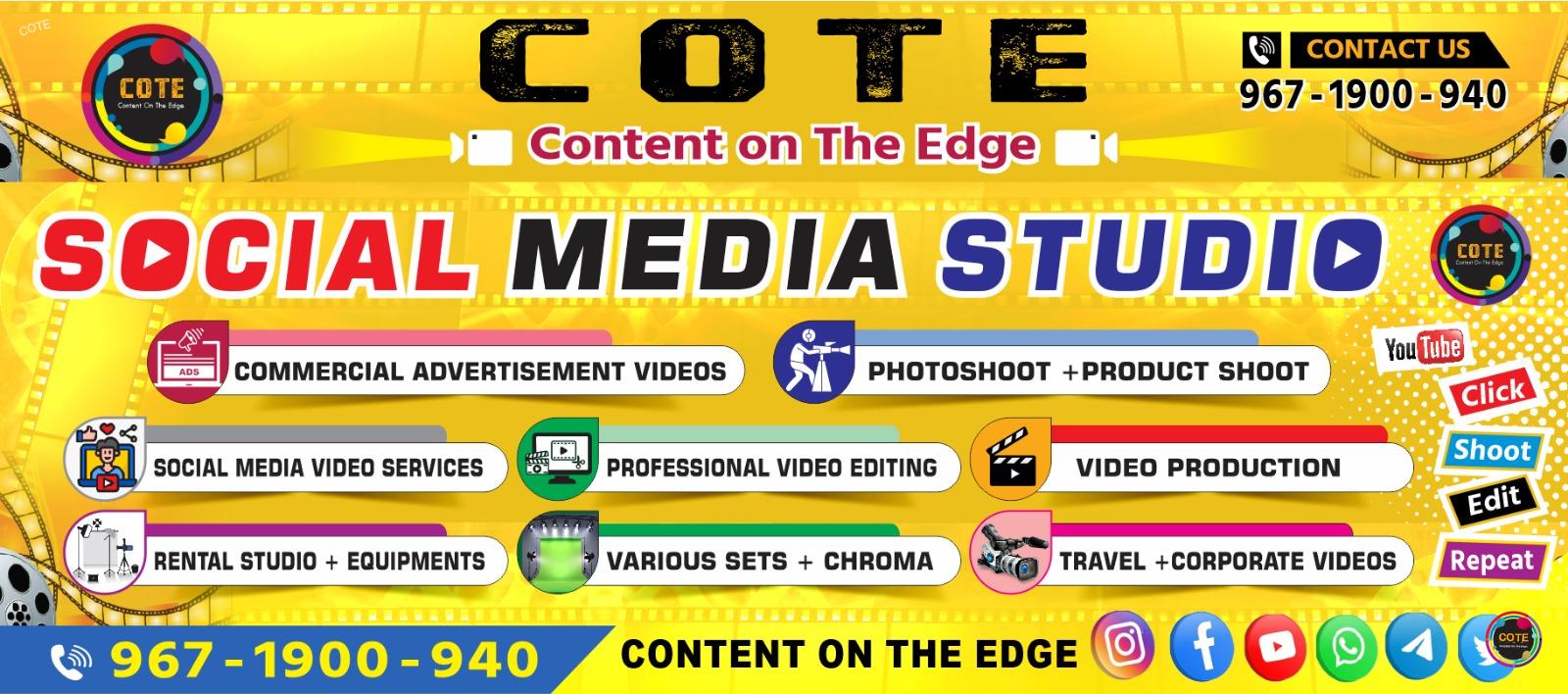 Content on the Edge (COTE) is a cutting-edge social media studio that offers comprehensive advertisement and video production services. Our facilities include state-of-the-art studio rental spaces with various sets and equipment. We cater to commercial and corporate clients, social media influencers, and independent creators. Our services range from producing high-quality advertisement videos to renting out studio space and equipment, as well as providing expert video editing and photoshoot services.